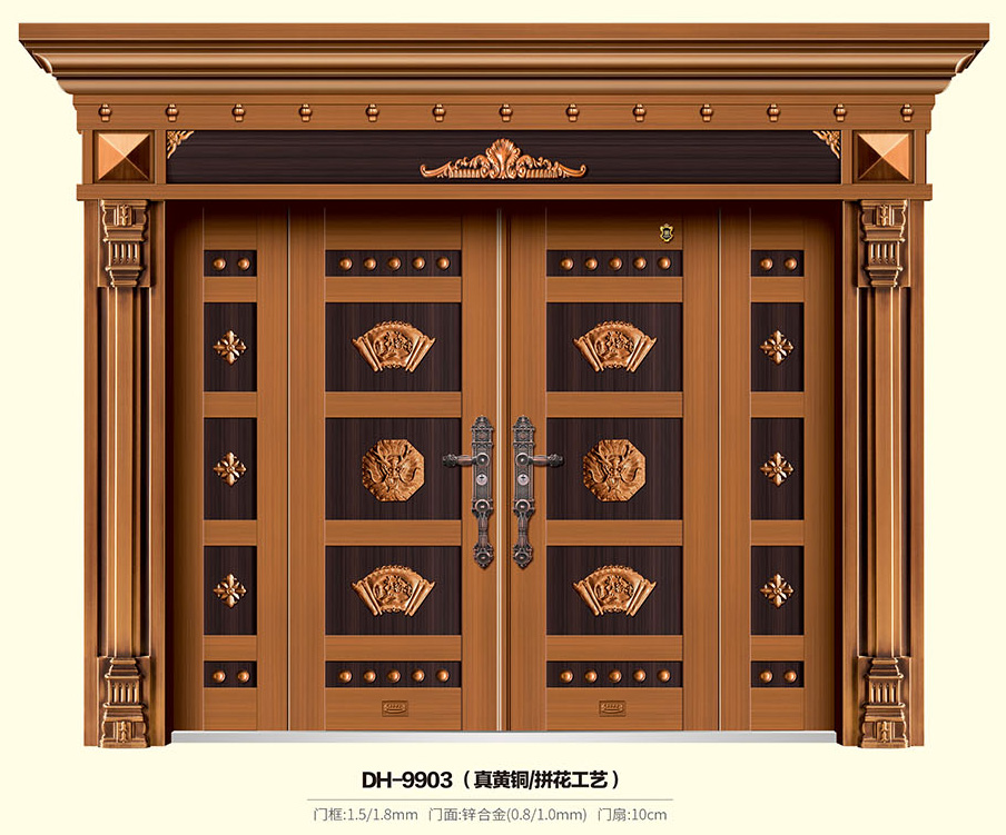 产品名称:超高带窗拼接门 产品编号:DH-9903(真黄铜/拼花工艺)