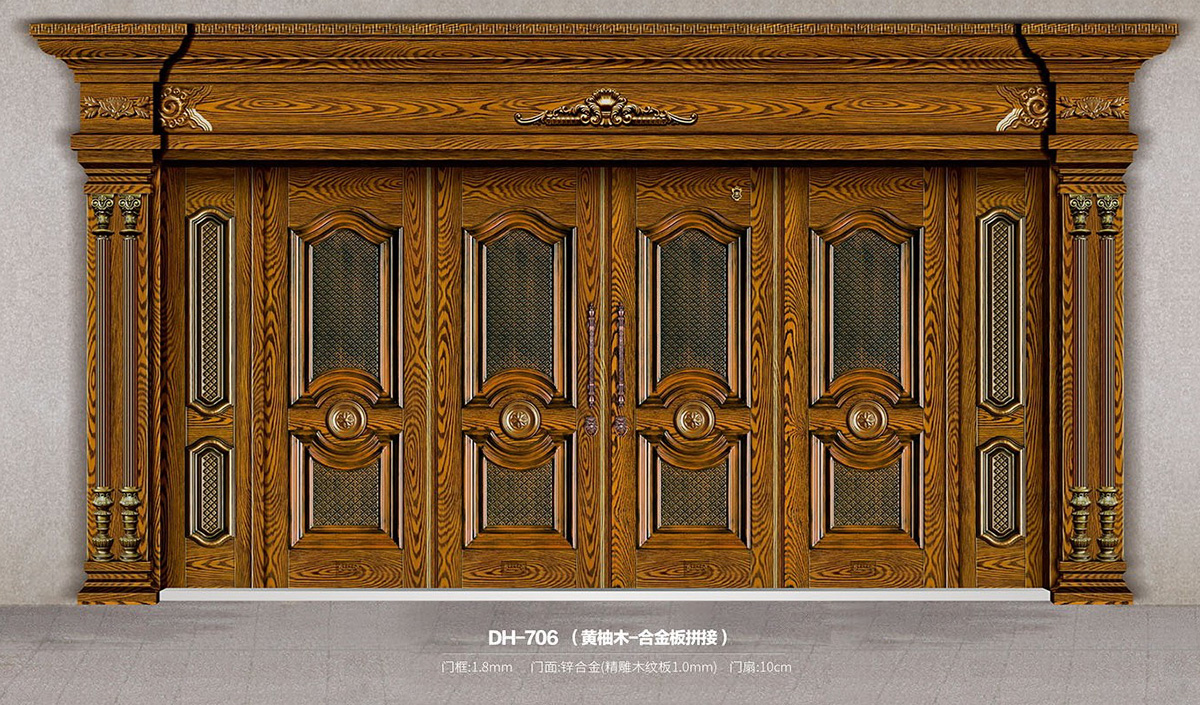 产品名称:豪华合金门拼接 产品编号:DH-706(黄柚木/合金板拼接)