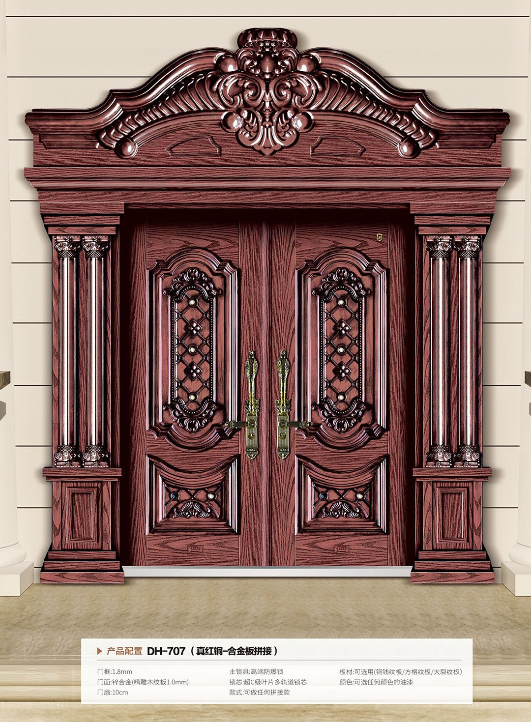 产品名称:豪华合金门拼接 产品编号:DH-707(真红铜/合金板拼接)