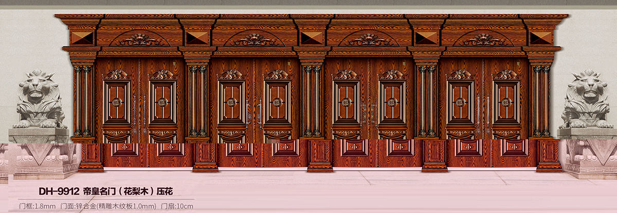 产品名称:豪华合金门拼接 产品编号:DH-9912 帝皇名门(花梨木)压花